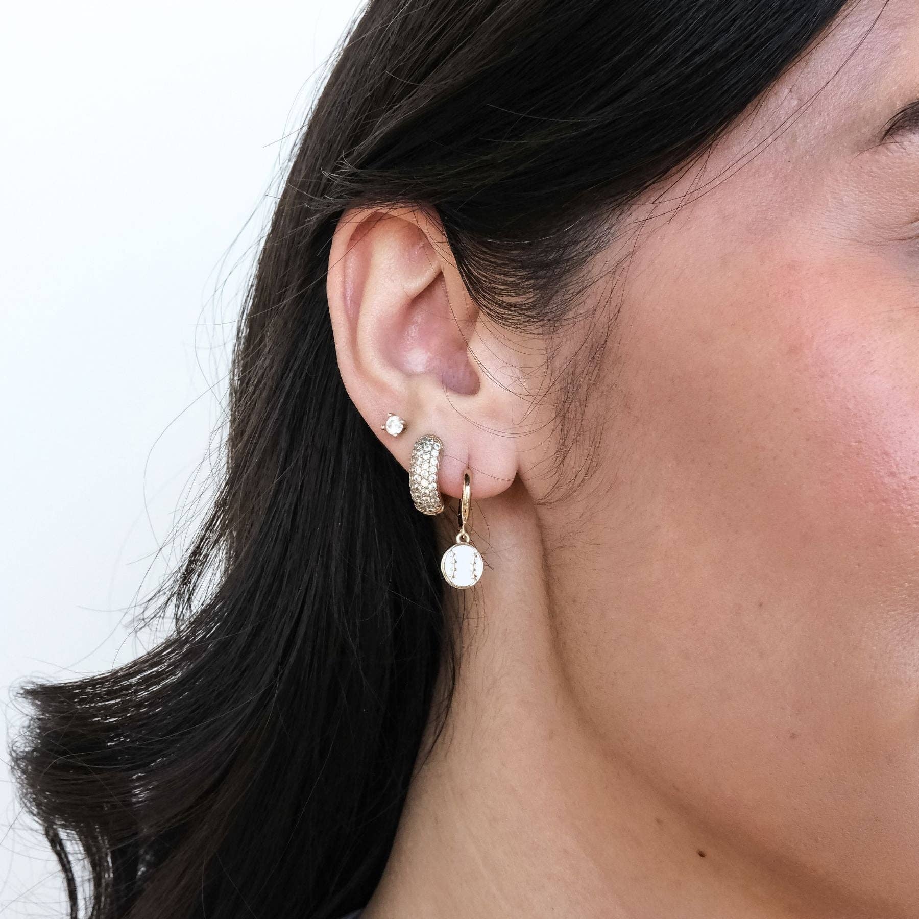 Step up to the plate in these enamel and gold Baseball Huggies! This dainty drop earring makes the perfect gift for your favorite fan or accent for your gameday outfit.