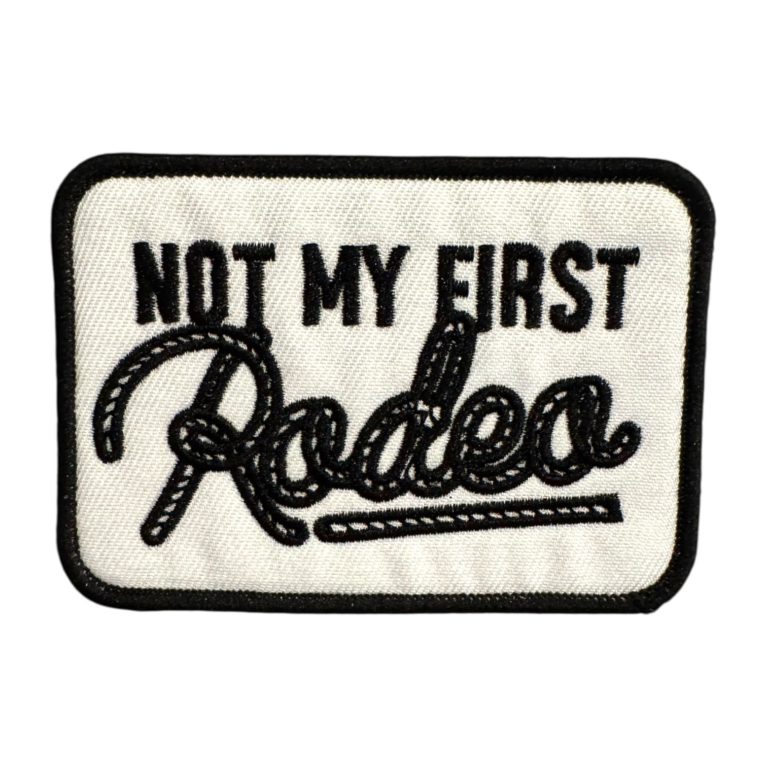 Not My First Rodeo Embroidered Hat Patch Measures 3.5" x 2.5"